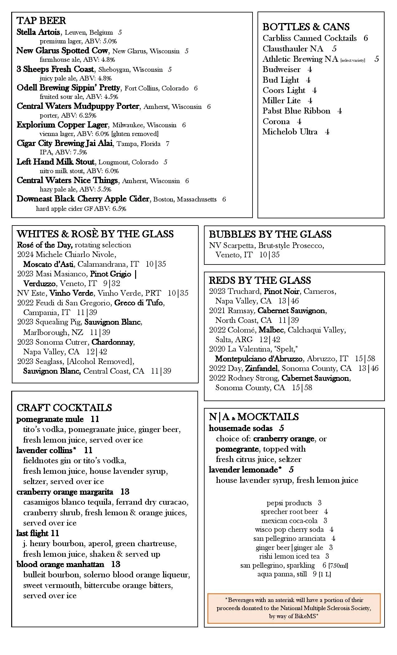 menu changes seasonally.