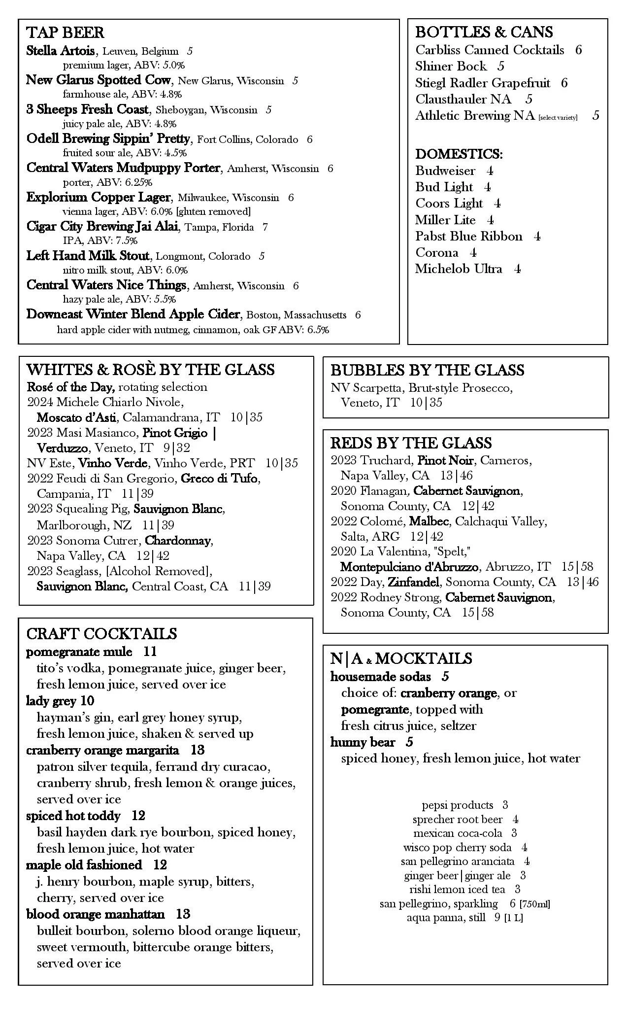 menu changes seasonally.